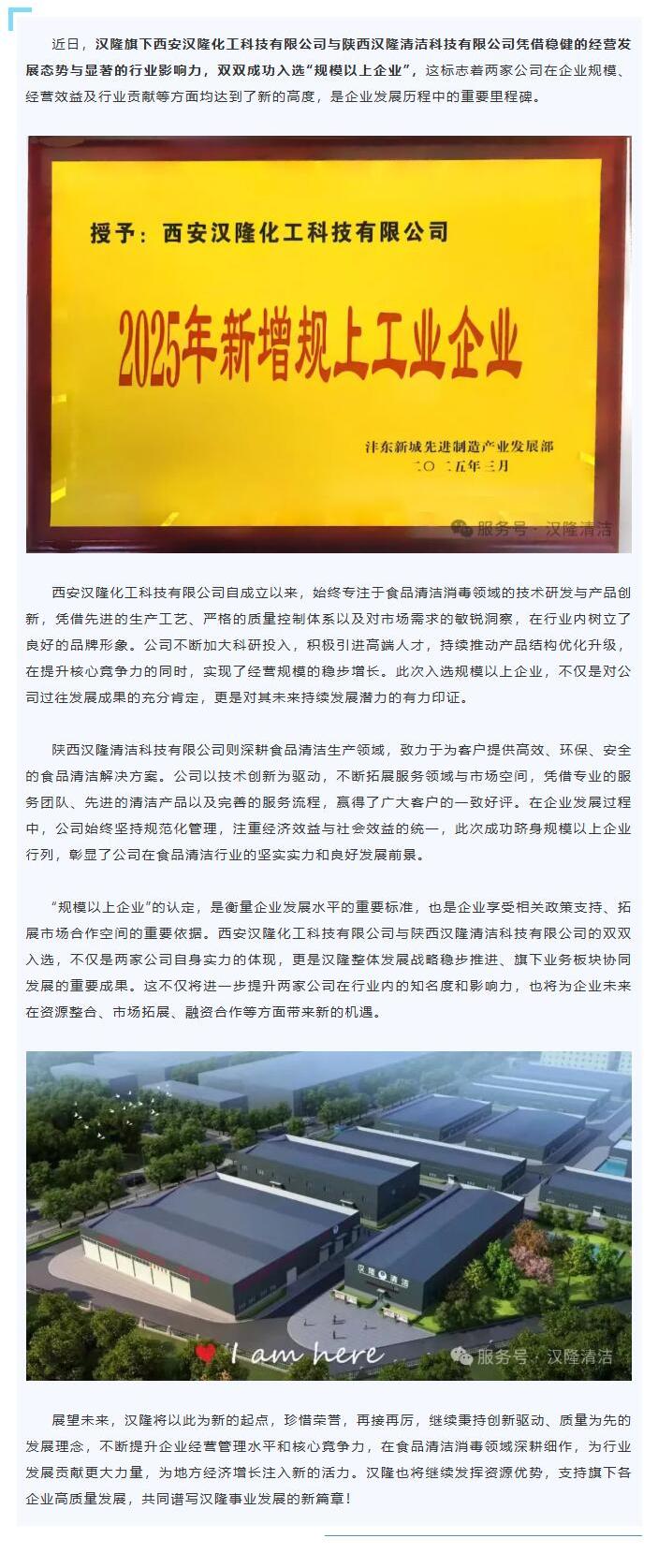 【喜讯】汉隆旗下两家公司入选“规模以上企业”!